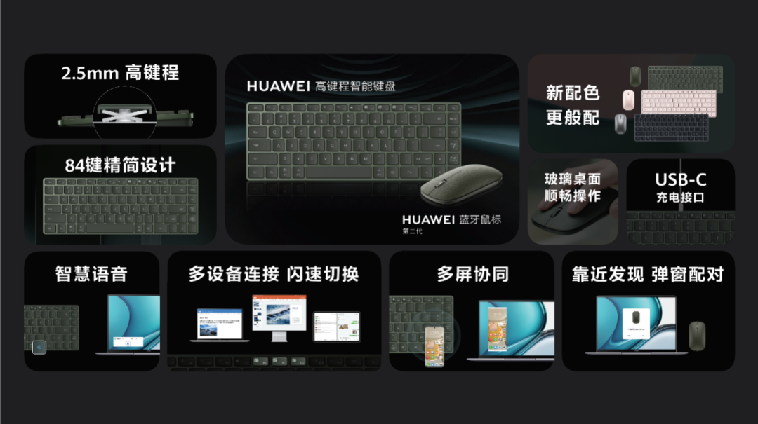 為了打造更為全面的智慧辦公體驗,讓智慧辦公不留死角,這次發布會,華為還發布了智慧辦公好搭檔,華為高鍵程智能鍵盤和第二代華為藍牙鼠標。況且兩款制品不僅一樣持有時尚的外觀,高品質的輸入和操控體驗,與華為PC、平板電腦協同運用,均支持靠近發掘,并且還都支持連接3臺區別形態的設備,還能做到在多設備之間的快速切換。跟傳統的配對方式對比,這種無縫切換的智慧體驗,能夠讓運用者從容應對多設備下的繁瑣工作。